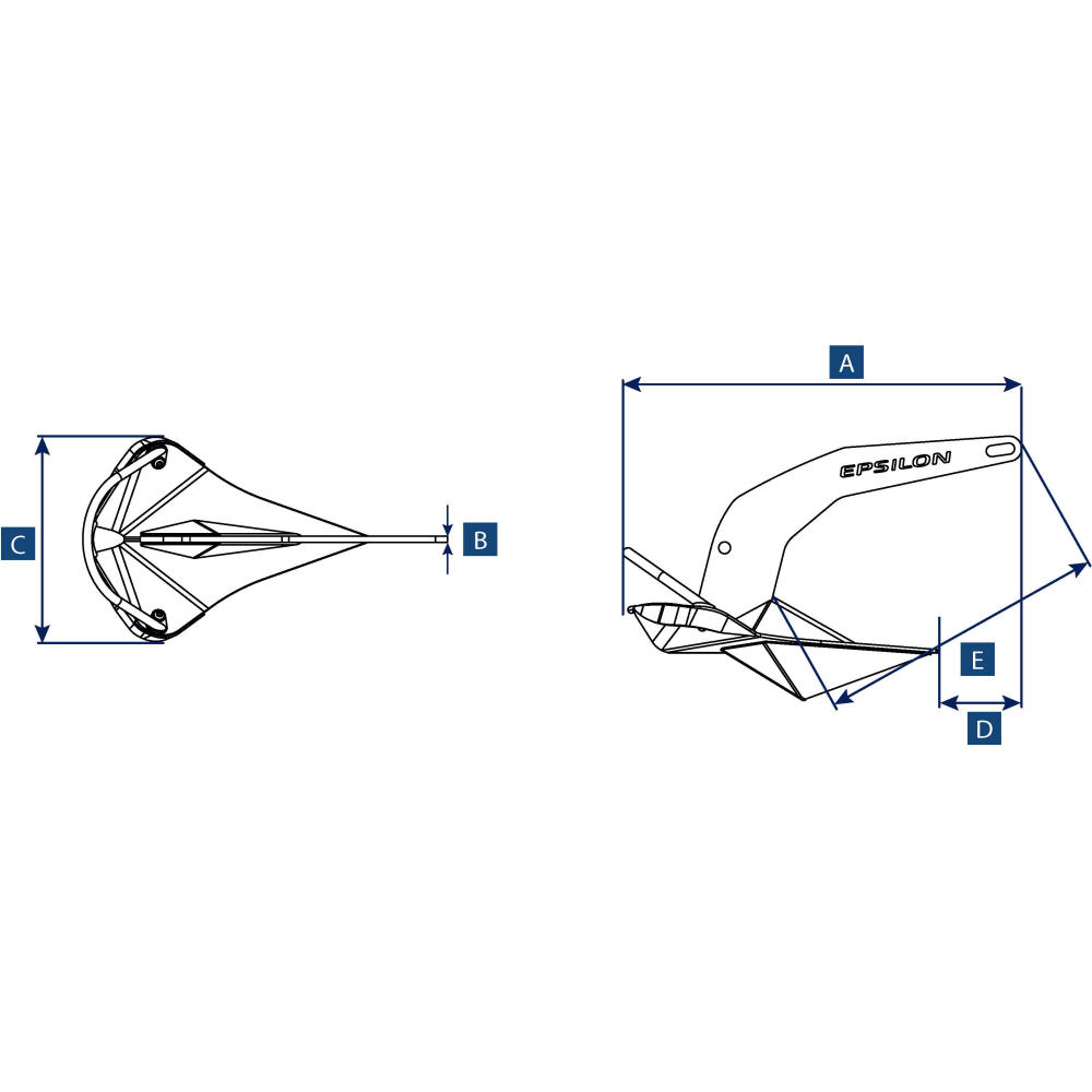 Der Epsilon-Anker mit seiner enormen Haltekraft ist eine Weiterentwicklung des legendären Delta-Ankers mit seinem bewährten robusten Design und seiner Qualität. Mit seiner speziell geformten Flunke und dem Ballastkiel bietet dieser Anker eine beispiellose Haltekraft und gräbt sich schnell ein.