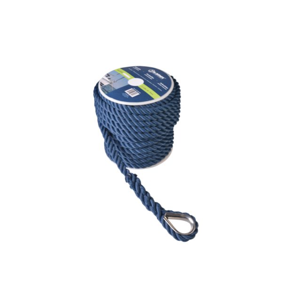 Ankerleine PES 3-fach geschlagen mit Niro-Kausche navy 12mm 30m