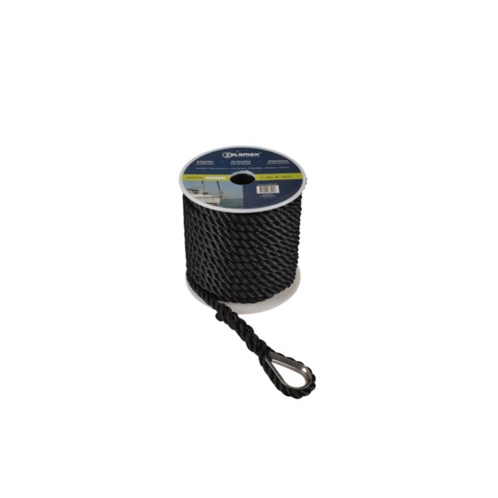 Ankerleine PES 3-fach geschlagen mit Niro-Kausche schwarz 12mm 30m