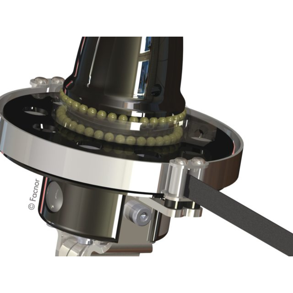 Flatdeck; das revolutionärste Rollfocksystem von Facnor. Keine schwere Reffleine sondern ein Polyesterband befindet sich auf der Trommel. Darum ist keine hohe Trommel mehr nötig. Die Flatdeck ersetzt hiermit alle konventionellen Reffsysteme mit Reffleine. Das Band rollt sich beim Ausrollen der Fock ordentlich auf. An dem einen Ende des Bandes ist mit einem Wirbel die Leine zur Bedienung aus dem Cockpit befestigt. Mit einem speziellen Leitblock, vier Stück werden mitgeliefert, läuft die Leine reibungslos nach hinten. Die Trommel hat ein offenes Torlonlager. Diese sind über eine Spülöffnung leicht zu reinigen. Die großen Vorteile von der Facnor Flatdeck sind: