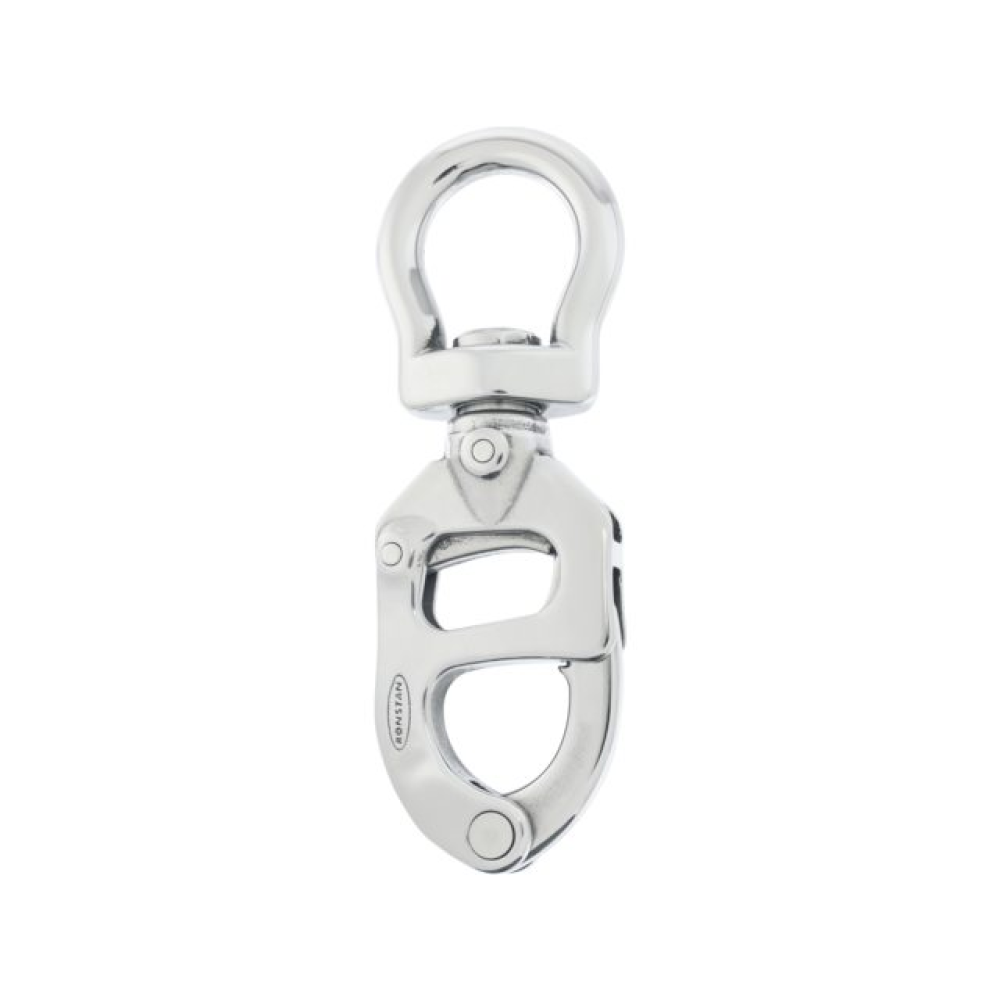 Mit den Ronstan Triggersnap-Schnappschäkeln können Sie Seile, Leinen oder Ketten sicher und effizient befestigen. Diese Schnappschäkel verfügen über einen Verriegelungsmechanismus, mit dem Sie sie schnell mit einer Hand bedienen können. Das Lösen des Schäkels unter Last kann einfach mit einem Dorn erfolgen.