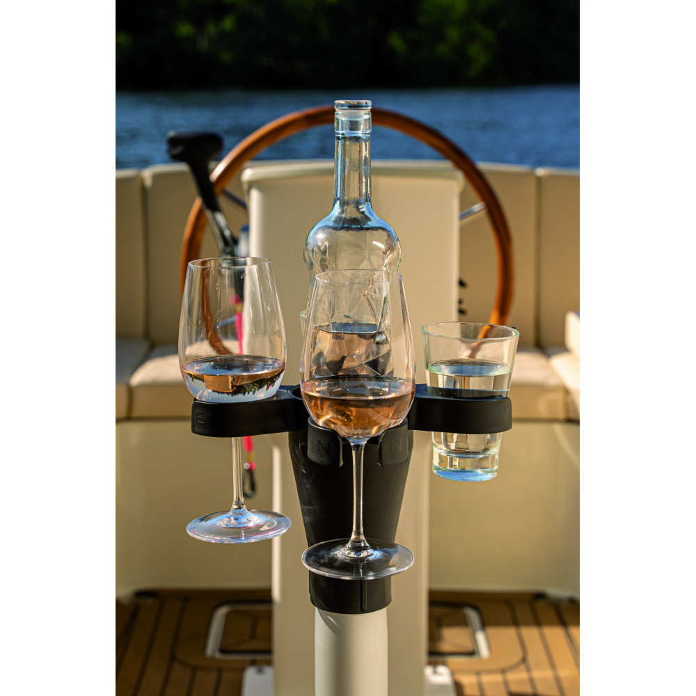 Dieser innovative und langlebige Flaschen- und Getränkehalter von Stilla bietet eine flexible Lösung für kleine und große Boote. Er passt in einen vorhandenen Getränkehalter oder kann den vorhandenen Tisch ersetzen, indem er auf die Tischsäule gestellt wird. Die multifunktionalen Halter eignen sich für verschiedene Arten von Tassen, Gläsern und/oder Dosen. In der Mitte des Halters befindet sich eine geräumige Aussparung, um beispielsweise eine handelsübliche Sektflasche zu verstauen oder Snacks zu präsentieren. Die vier Halterungen können einzeln demontiert und im Flaschenhalter verstaut werden. Der Stilla Getränkehalter besteht zu 60% aus recycelten Fischernetzen. Dies macht ihn zu einer umweltfreundlichen und nachhaltigen Option für diejenigen, die ihre Umweltbelastung reduzieren und einen Tag auf dem Wasser genießen möchten.
