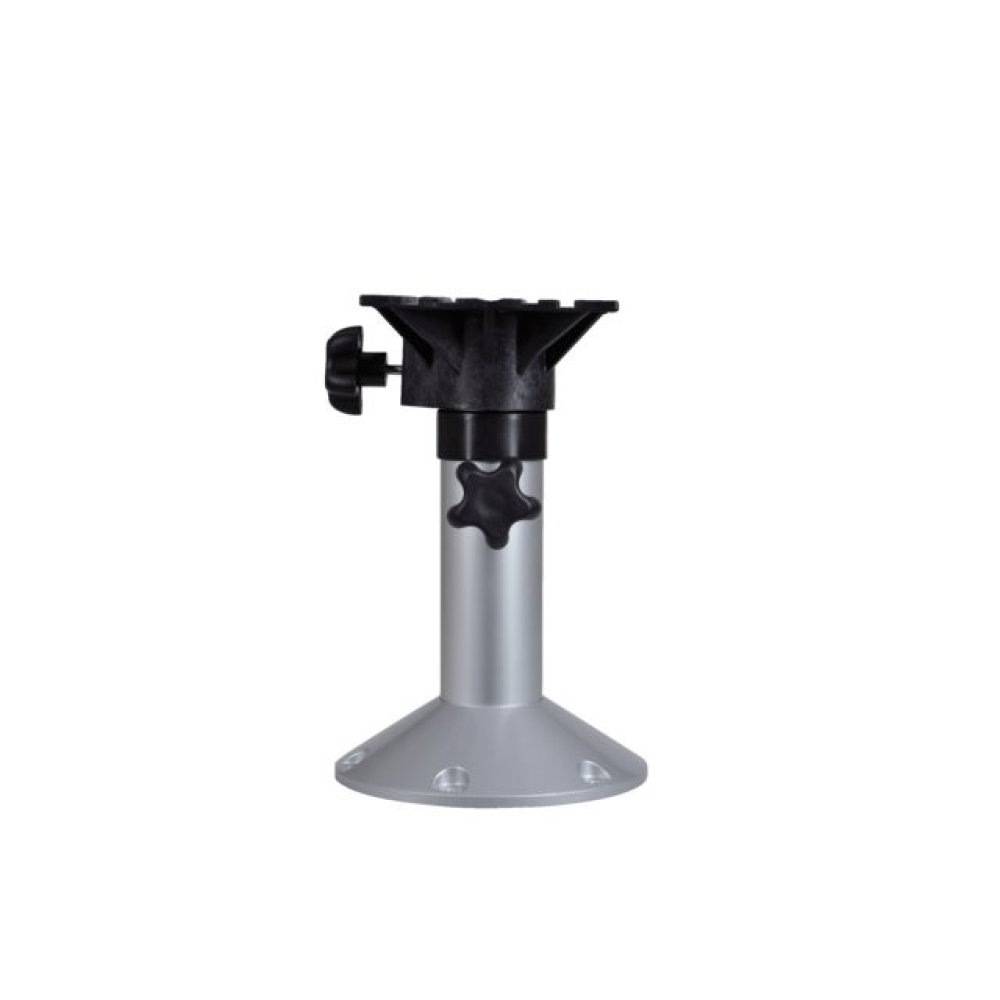 Höhenverstellbare Stuhl/Tischsäule aus Aluminium. Die Säule ist stufenlos verstellbar. Die Montageplatte für Sitz oder Tischplatte ist universell, abnehmbar und kann in jede gewünschte Position gedreht und arretiertwerden. 4-Loch-Montage mit Langlöchern.