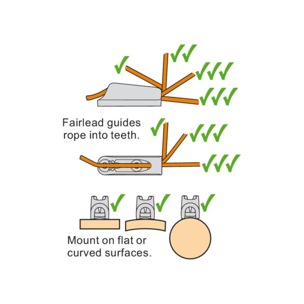Eine Leitöse führt das Tauwerk in die Klemme.