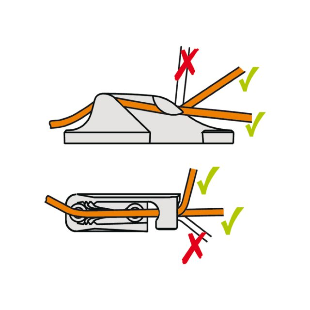 Bei Klemmen mit seitlichem Einzug kann das Tauwerk unter der Leitöse eingeklemmt werden.