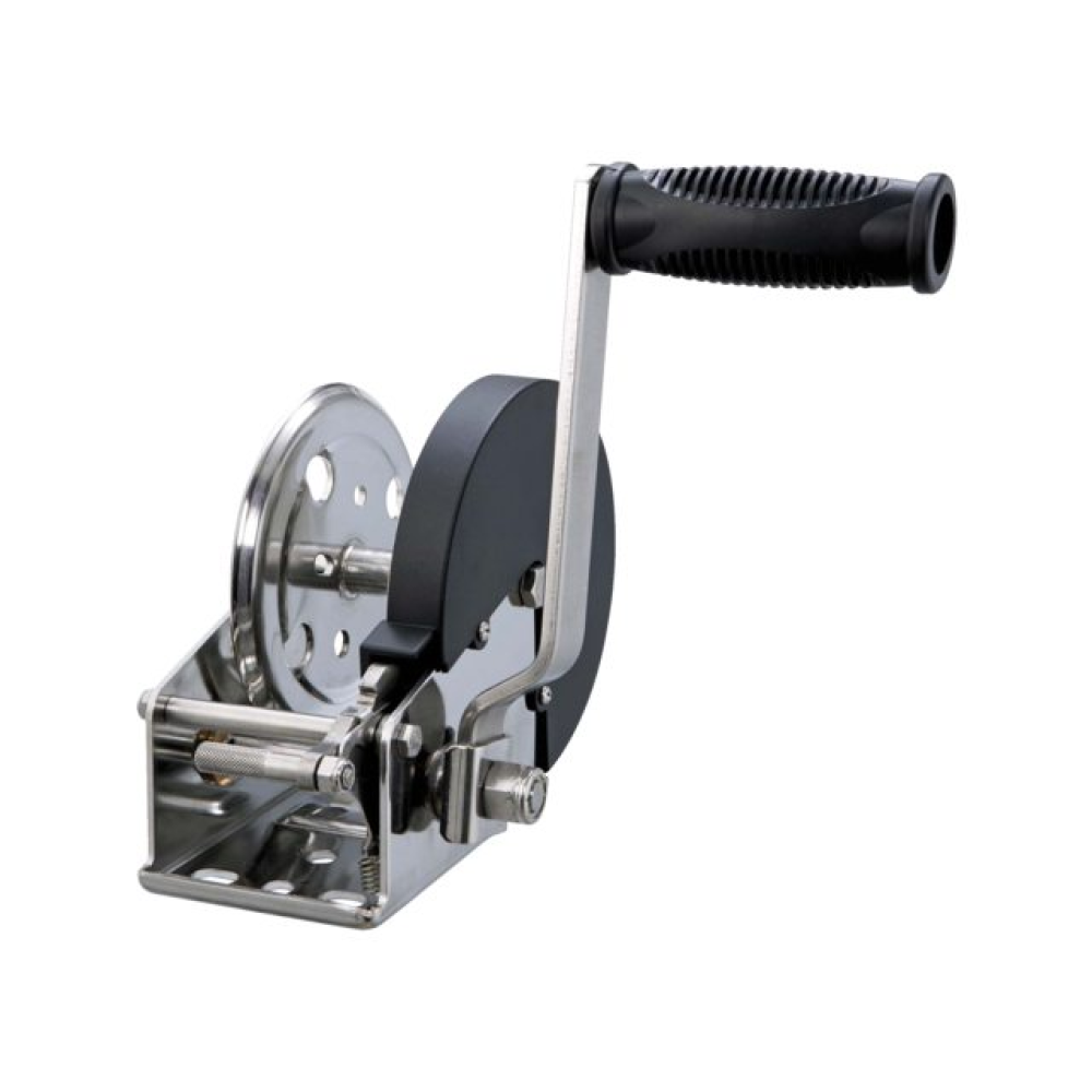 Edelstahl AISI 304 / A2. Verfügt über einen Gang und Freilauf. Mit Sperrklinken, blockieren in beide Richtungen. Winden in beide Richtungen möglich.