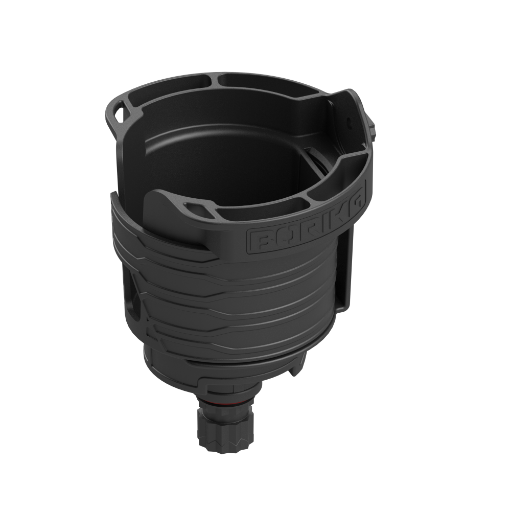 Der durchdachte und vielseitige Becherhalter bietet nicht nur Platz für Becher, Gläser, Tassen, Flaschen oder Thermosflaschen, sondern verfügt auch über Aussparungen an den Seiten, um andere Zubehörteile wie Karabinerhaken, Messer oder Schwimmer aufzuhängen. Das clevere Drehsystem an der Seite hat drei Stufen. Wenn der Halter geschlossen wird, wird die Tasse an Ort und Stelle gehalten. Bei vollständig geschlossenem Zustand kann der Halter auch als zusätzlicher Stauraum verwendet werden.