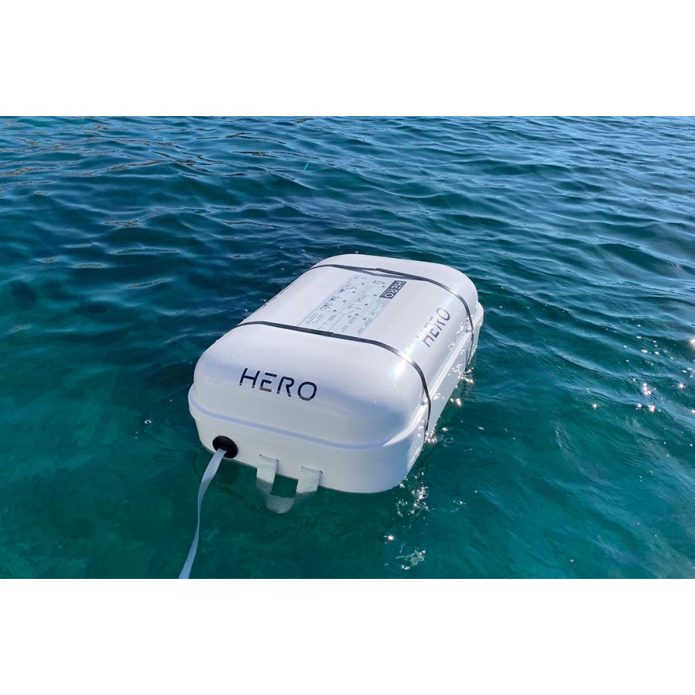 Rettungsinsel für große Seen und Küstengewässer, ausgestattet mit einer sich automatisch aufrichtenden Dachstütze. Dies gewährleistet eine wichtige Zeitersparnis und hohe Sichtbarkeit im Rettungseinsatz. Sehr leicht und kompakt für einfache Lagerung an Bord und Handhabung im Notfall.