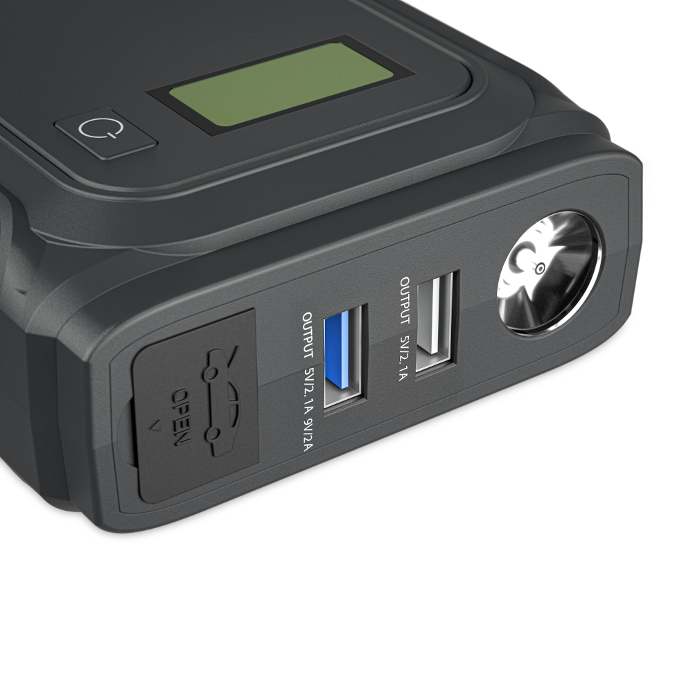 Tragbare Powerbank, Starter, Qi-Ladegerät, Taschenlampe