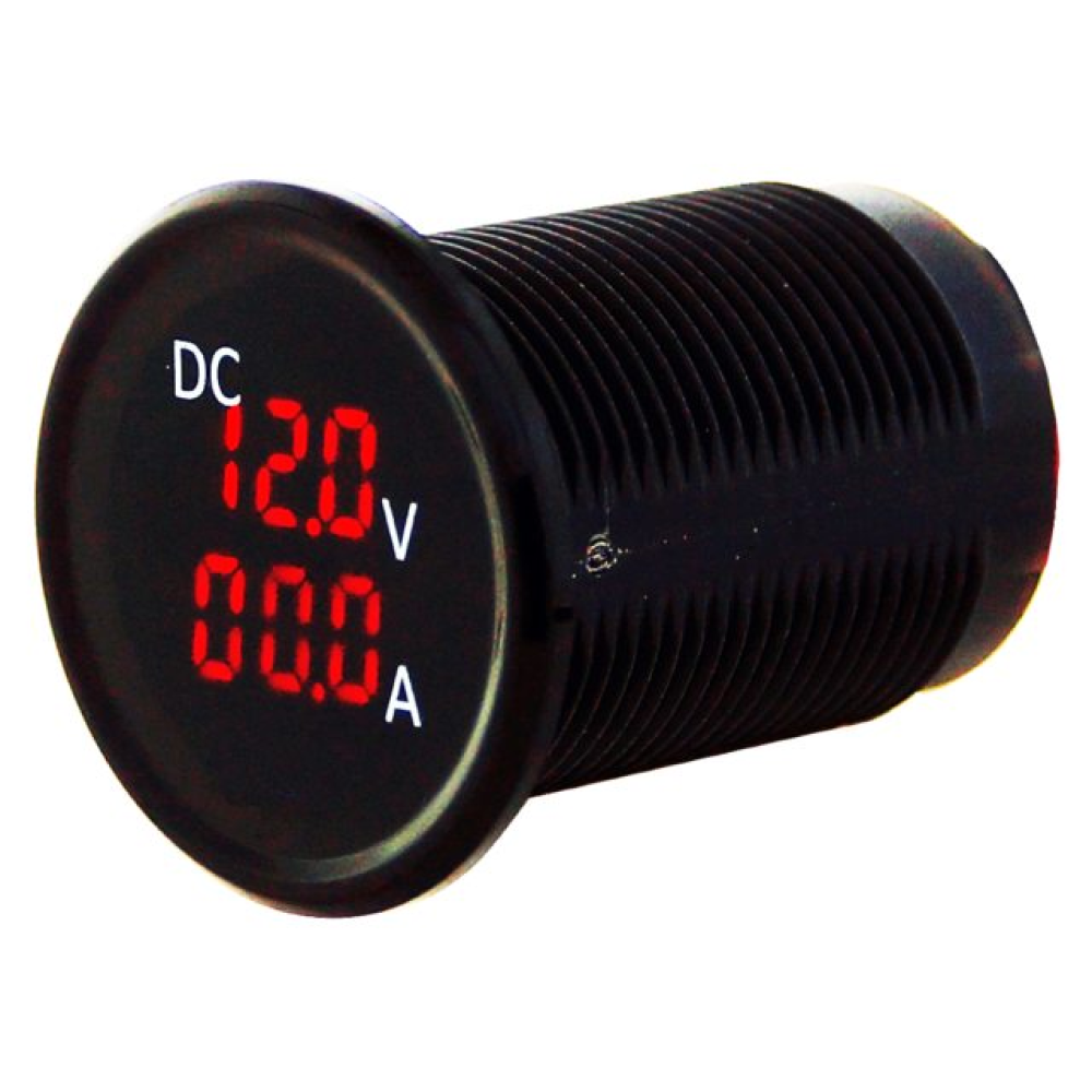 Kompaktes, digitales Spannungs- und Strommessgerät, das die Gleichspannung und den Stromverbrauch einer Batterie an Bord anzeigt. Das Gehäuse ist vollständig abgedichtet und mit Schutzart IP67 wasserdicht und für eine Außenmontage geeignet. Das Messgerät wird mit einem Einbaurahmen geliefert, passt aber auch in Modelle mit Doppelrahmen. Fließkomma, bei Spannungen unter 10V wird der Wert nach dem Punkt zweistellig angezeigt. Verpolungschutz.