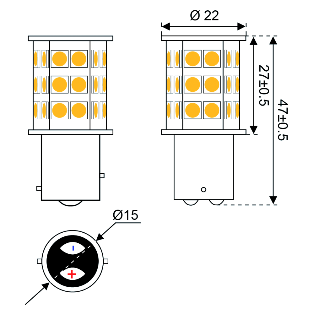 S-LED 15xSMD-BAY15d 10-30V 1,6W kw 6000K 150lm