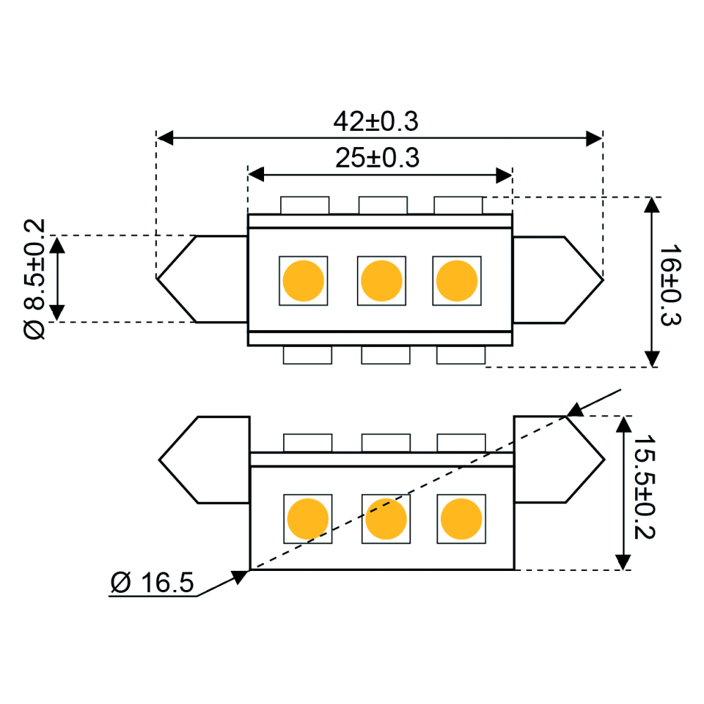 S-LED 9xSMD-Soffitte 42mm 10-30V 2,0W ww 3000K 200lm (in DE nicht lieferbar)