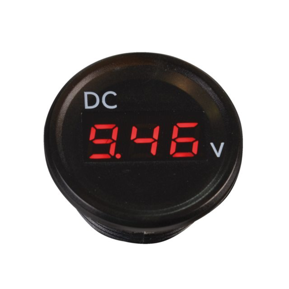 Kompaktes Digitalvoltmeter zur Anzeige von Gleichstromspannung an Bord. Das Gehäuse ist komplett abgedichtet und entspricht Schutzart IP67. Daher ist das Voltmeter auch für eine Außenmontage geeignet. Das Messinstrument wird mit einem Flushmount-Einbaurahmen geliefert, passt aber auch in den Doppelrahmen des USB-Adapters. Die LED Anzeige ist dreistellig, der Dezimalpunt ist variabel, bei Spannungen unter 10V wird der Wert nach dem Punkt zweistellig angezeigt. Verpolungsschutz.