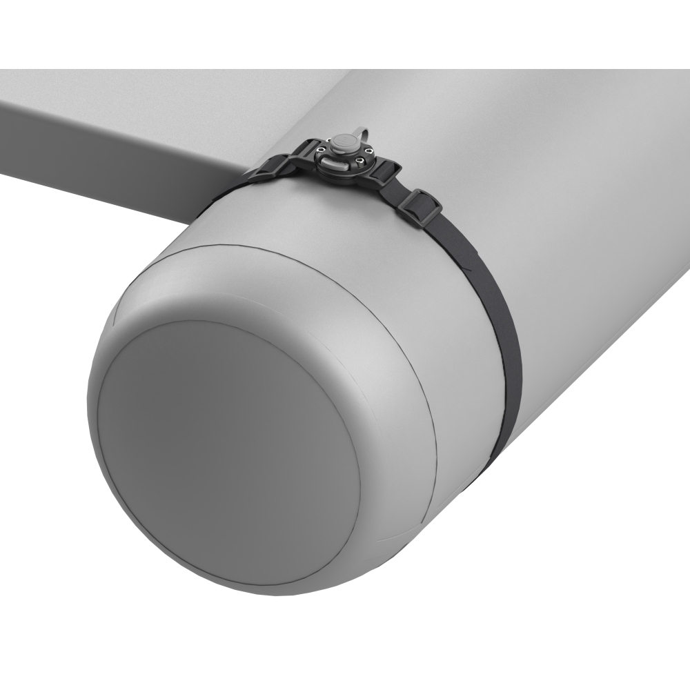 Zubehörhalter wird mit einem Gurtband an den Schläuchen von Schlauchbooten,