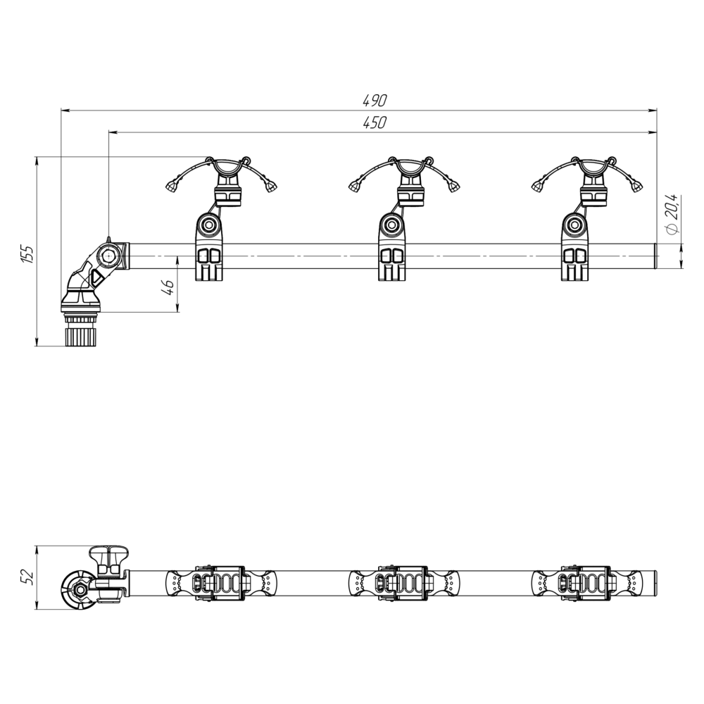 und ermöglicht die Ablage von drei (Wurf-) Ruten außerhalb des Bootes, um im