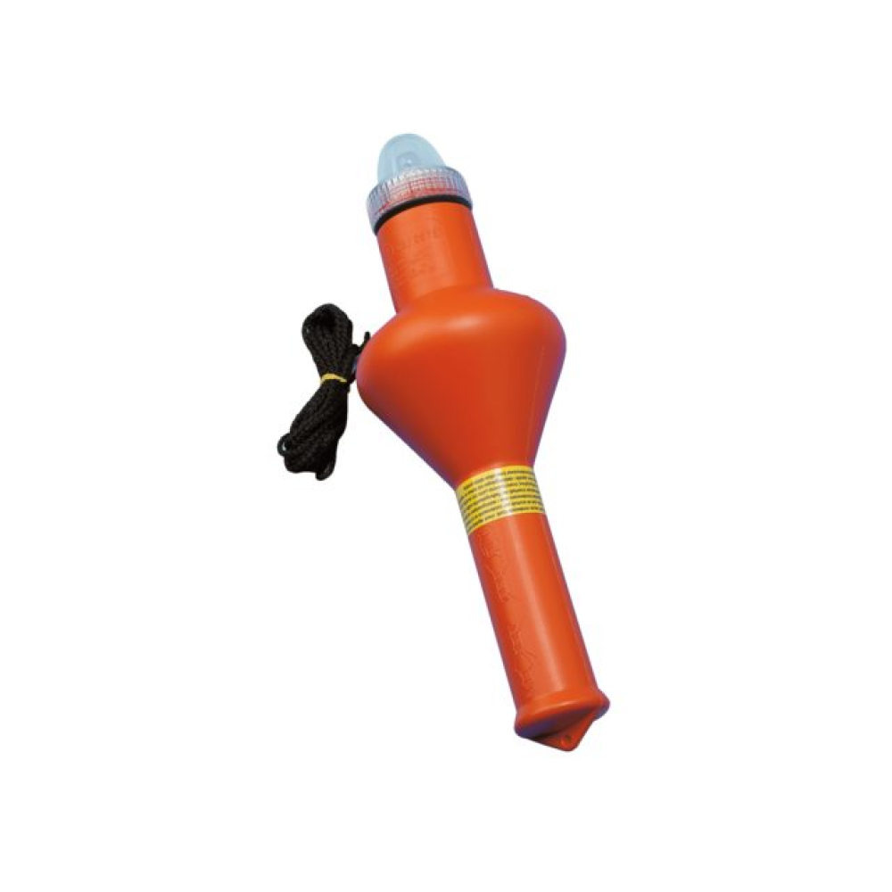 Stoßfestes Kunststoffgehäuse. Das Signallicht schaltet sich automatisch ein, wenn es aufrecht im Wasser schwimmt.