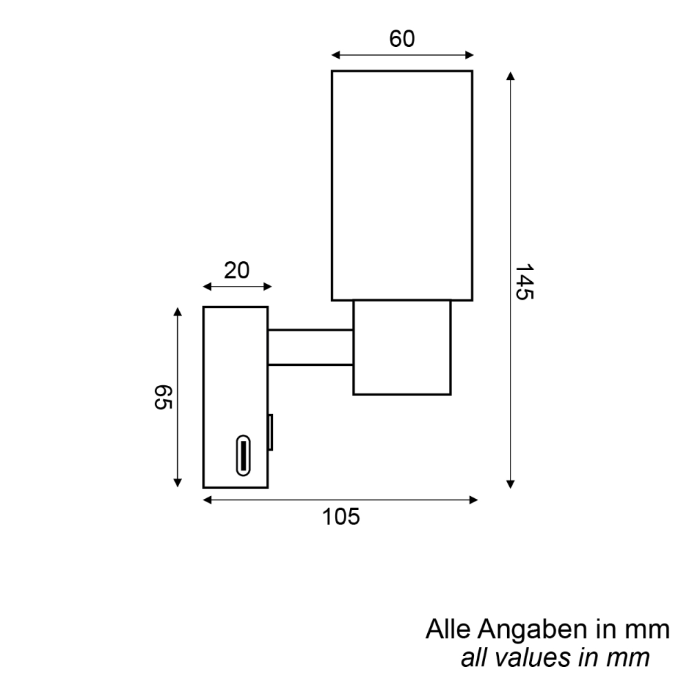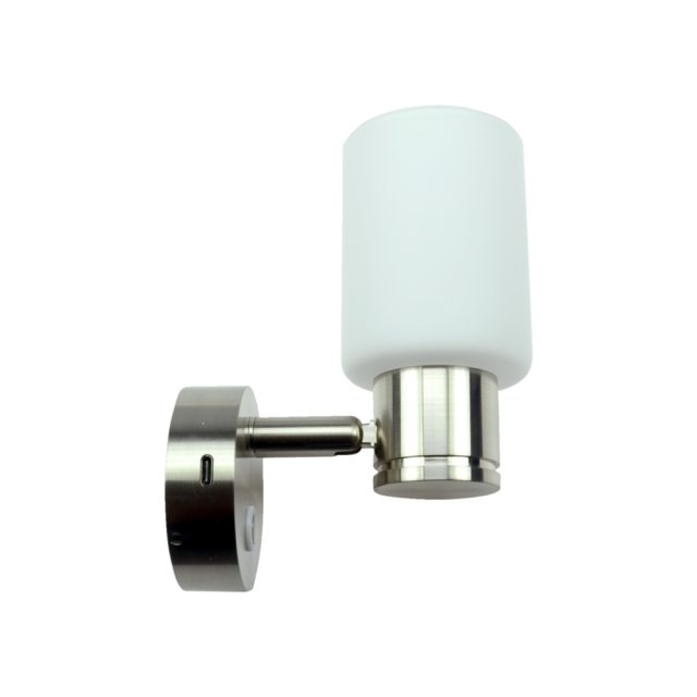 Stilvolle Wandleuchte mit Touch-Dimm-Funktion und USB-C-Schnellladebuchse unter anderem für Tablets und Smartphones.