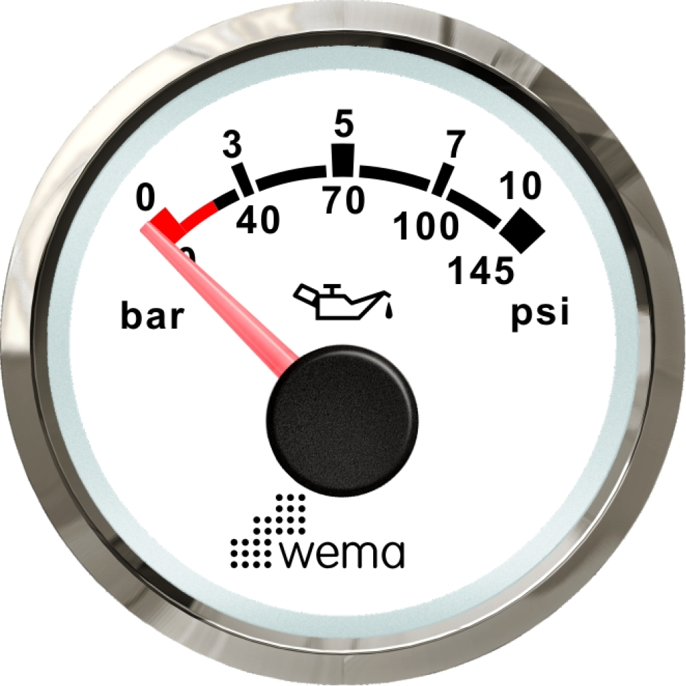 Wema NMEA2000 Silber-Serie Anzeige Öldruck 10bar weiß