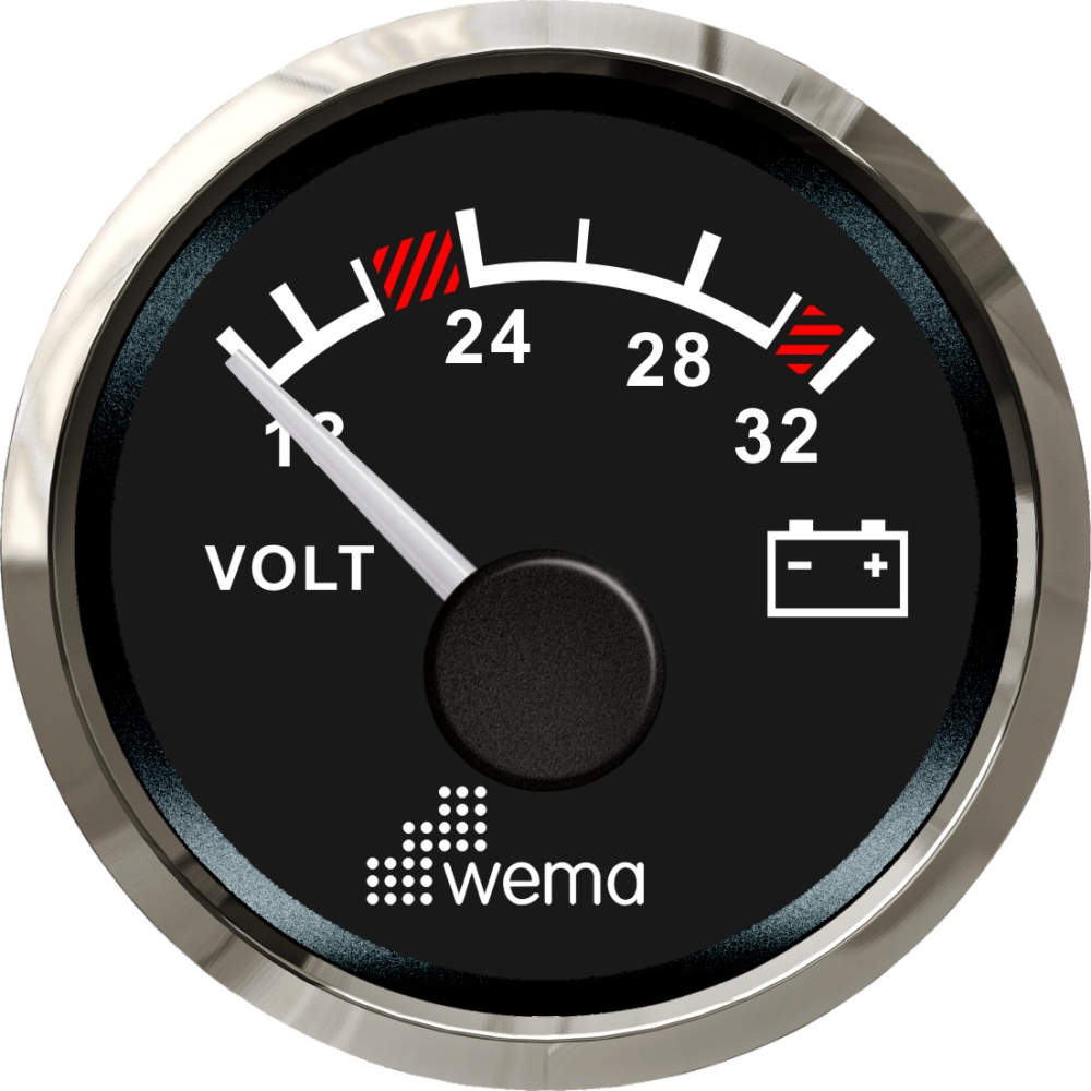 Wema Silber-Serie Anzeige Voltmeter 24V schwarz