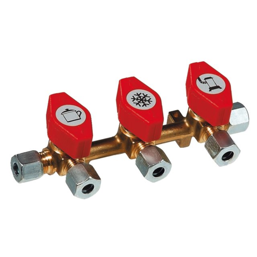 Verteilerblock 3 Ausgänge mit 8mm RVS x 8mm RVS