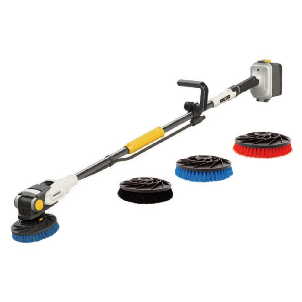 Die neueste Reinigungsinnovation. Die Twin Brush ist eine leistungsstarke 18-Volt-Scheuerbürste, die sich perfekt für die Reinigung von Booten, Wohnwagen, Wohnmobilen und vielem mehr eignet. Dieser einzigartige und leistungsstarke 18-V-Schrubber reinigt Oberflächen, wie Sie es noch nie zuvor gesehen haben. Das Besondere an der Twin Brush sind die patentierten gegenläufigen Bürsten. Dadurch haben Sie mehr Kontrolle über den Schrubber und können Oberflächen schneller, einfacher und besser reinigen. Diese patentierte Funktion gibt Ihnen auch die Möglichkeit, zwischen einem festen und einem beweglichen Bürstenkopf zu wählen, und zwar zwischen einem Winkel von -15° und 90°. In Kombination mit einem zweiten Griff und einem stabilen und langen Aluminiumstiel ergibt sich eine bessere und bequemere Arbeitsposition, die eine intensive Nutzung ermöglicht. Für eine noch bessere Reinigungsleistung können Sie einen Wasserschlauch an die Twin Brush anschließen. Dieser Wasserschlauchanschluss sorgt für eine gesicherte automatische Wasserzufuhr, die das Wasser in die Bürste spritzt. So wird ein optimales Reinigungsergebnis erzielt. Dank des wasserdichten Designs und der Batterieabdeckung ist die Twin Brush außerdem nach IPX7 zertifiziert. Auf diese Weise können Sie die Twin Brush sogar unter Wasser verwenden. Technische Daten:
