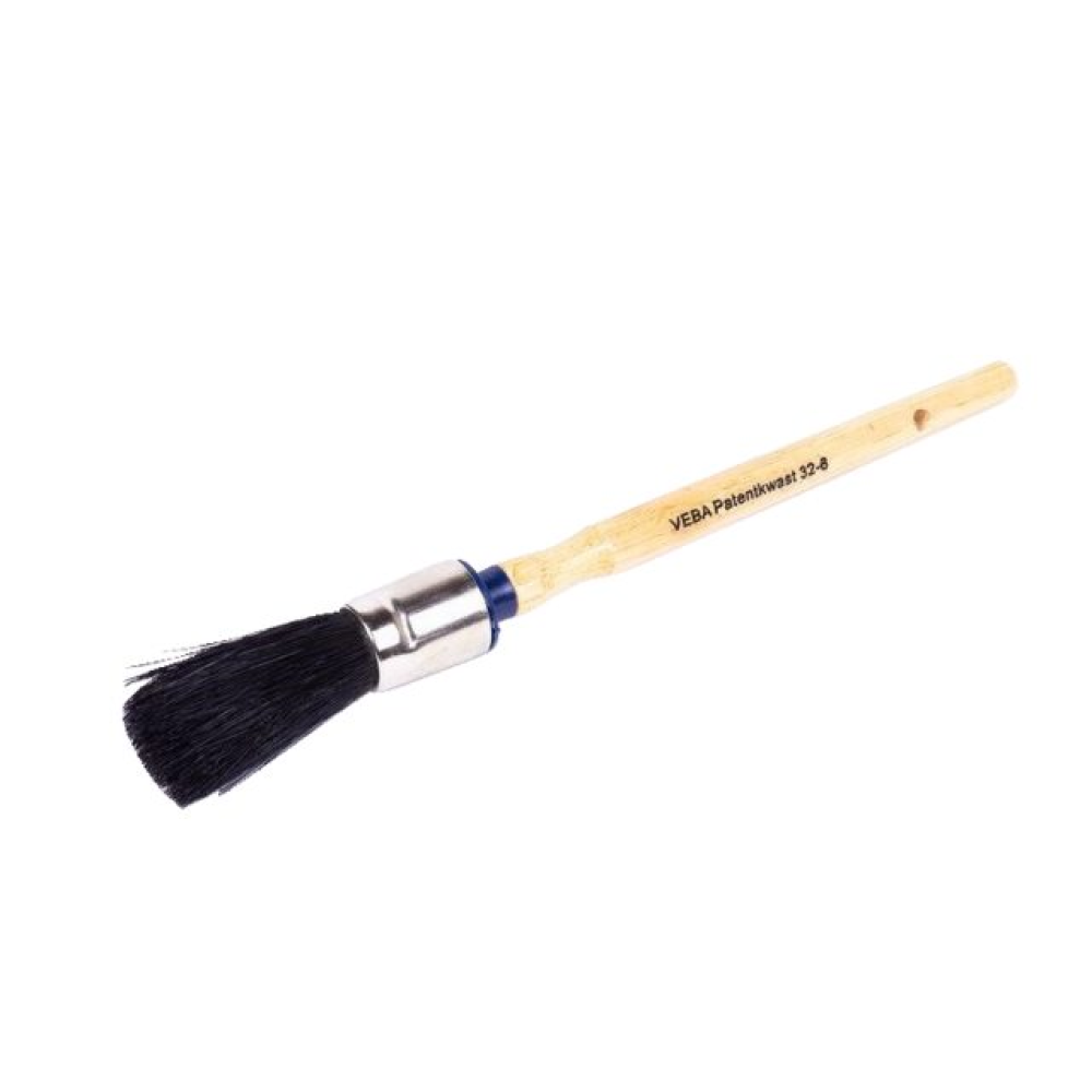 o geeignet für Farben auf Terpentinbasis (synthetische Farben) o lackierter, handlicher Holzstiel mit verzinkter Zwinge und schwarzen Naturborsten