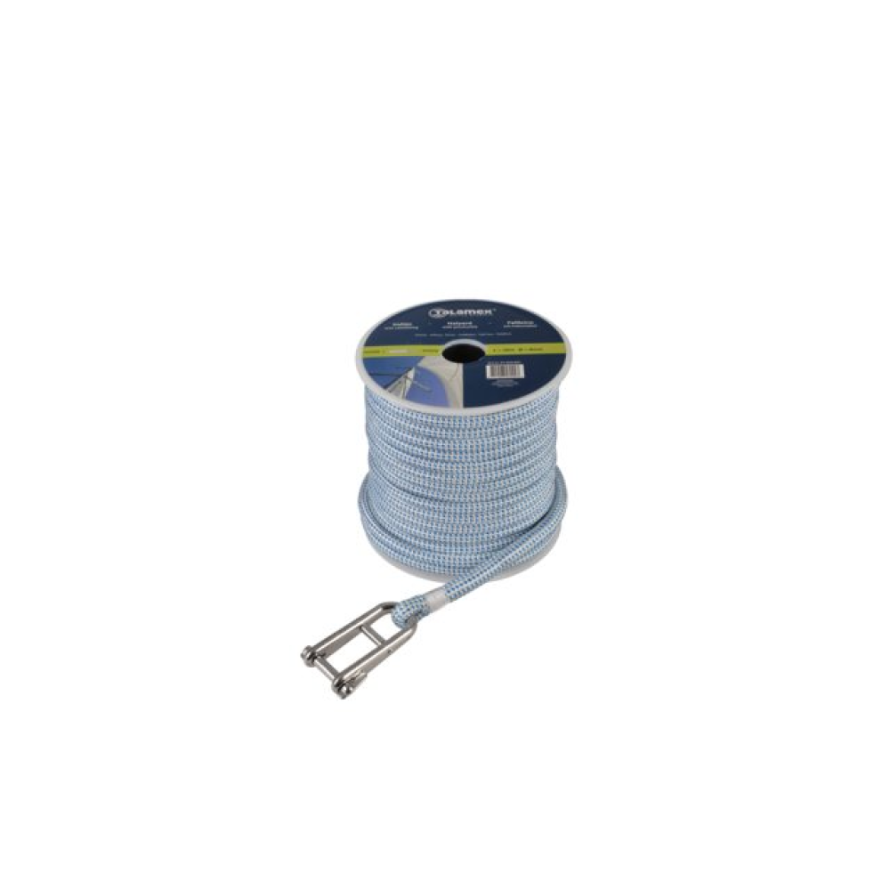 Ankerleine PES geflochten mit Bleikern+Niro-Kausche schwarz/weiß 16mm 40m