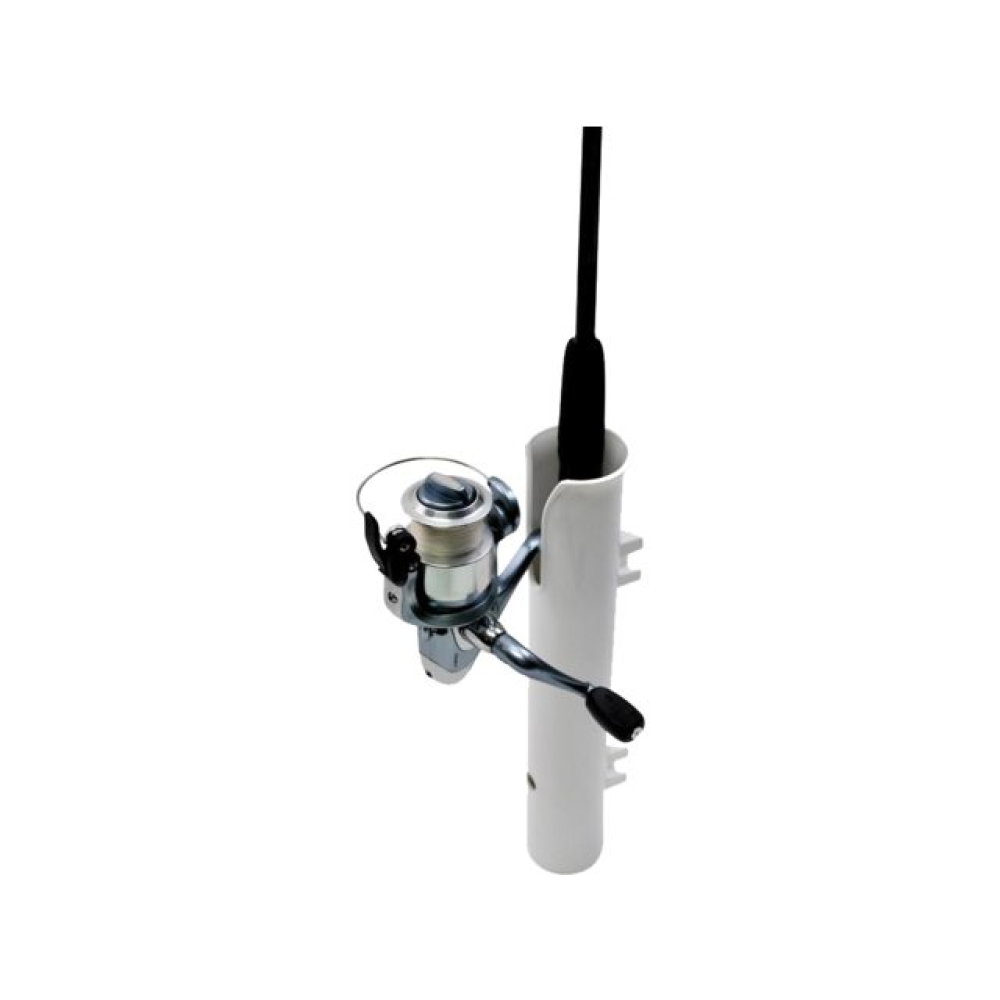 Weißer Angelrutenhalter aus Kunststoff mit gegossenem Montageadapter.