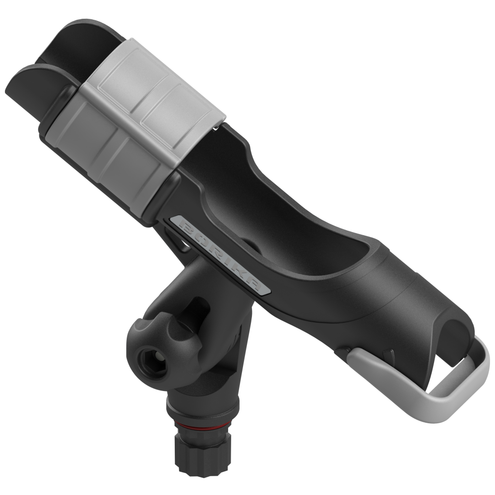 Der robuste Rutenhalter ist für Ruten mit verschiedenen Arten von Spinnrollen und Griffen ausgelegt. Oben befindet sich eine drehbare Halterung, mit der die Rute sicher im Halter gehalten wird.