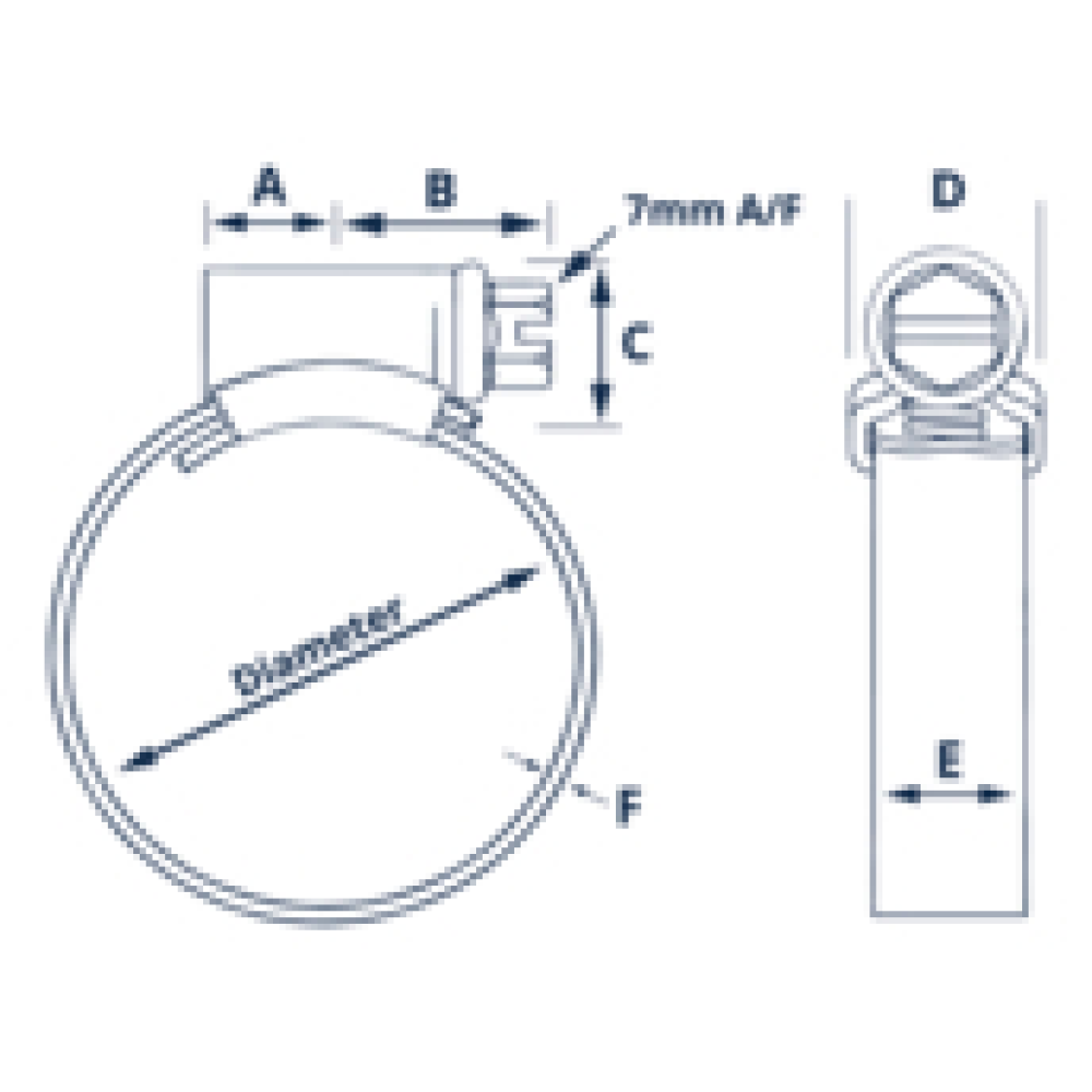 - Edelstahl A2 – AISI 304 (Cr18Ni8), 1.4301 ISO 10088. British Standard Specification BS 5315. Zugelassen durch Lloyds und Nato für den Gebrauch an Bord von Schiffen. Abgerundete Kanten zum Schutz der Schläuche