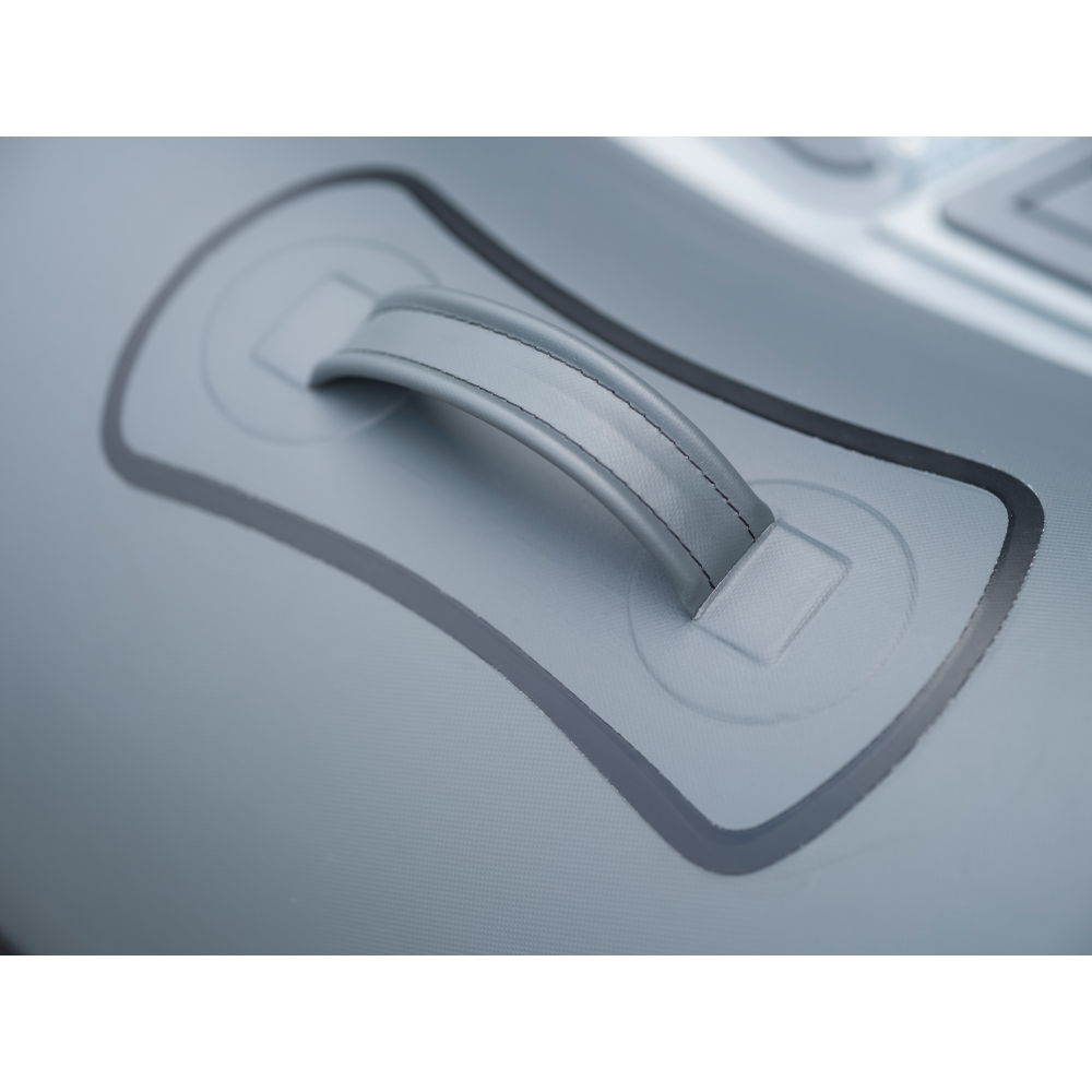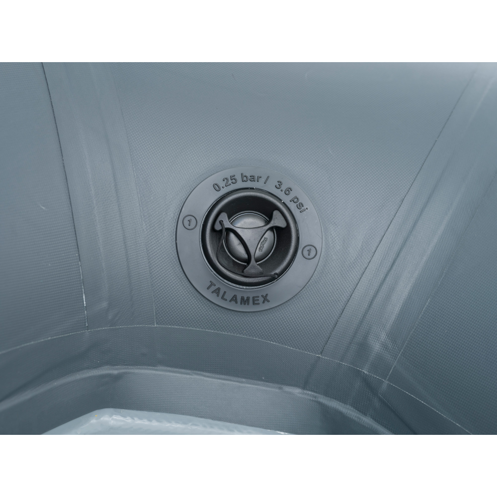 Sportliches Fahren in einem sehr wendigen Boot mit hervorragenden Fahreigenschaften. Das Talamex S-Line wird aus dunkelgrauem 0,9mm Valmex® Mehler PVC-Gewebe aus deutscher Produktion hergestellt, der besten verfügbaren Qualität. Thermogeschweißte Nähte für eine lange Lebensdauer. Der Aluminiumrumpf ist stark, stabil und leicht. Die Talamex S-Line hat einen Bugstauraum und einen Doppeldeck-Rumpf mit flachem Boden, der mit einem luxuriösen EVA-Schaum-Boden ausgestattet ist.