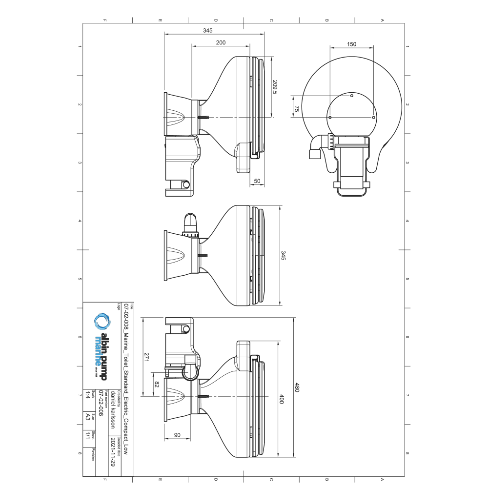 Albinus Marine Toilette Standard ElektrEVkompakt flach 12V