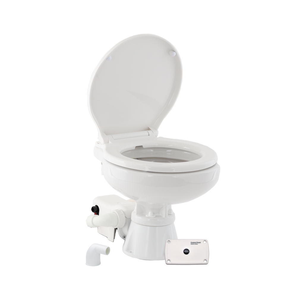 Die elektrischen Talamex Superkompakt-Toiletten sind hochwertige Produkt mit einem weißen Keramikbecken und einer kombinierten Pumpe für Spül- und Abwasser, die bis zu 1,2m über den Boden pumpen kann. Die Toiletten werden mit einem Soft-Close-Toilettensitz geliefert. Die speziell entwickelte Spüldüse an der Innenseite des Beckens sorgt mit einer starken Wirbelwirkung für eine saubere Spülung. Die Montagelöcher sind kompatibel mit anderer Marken wie Jabsco, Johnson und Albin. Die elektrischen Toiletten von Talamex verfügen über ein 360°-Auslassknie, das die Installation erleichtert. Die Toiletten werden mit einem 25mm- und 38mm-Auslassknie geliefert, das die Umrüstung von manueller zu elektrischer Bedienung noch einfacher macht, da der 38mm-Ablasssschlauch wiederverwendet werden kann. Die Superkompakt-Toiletten