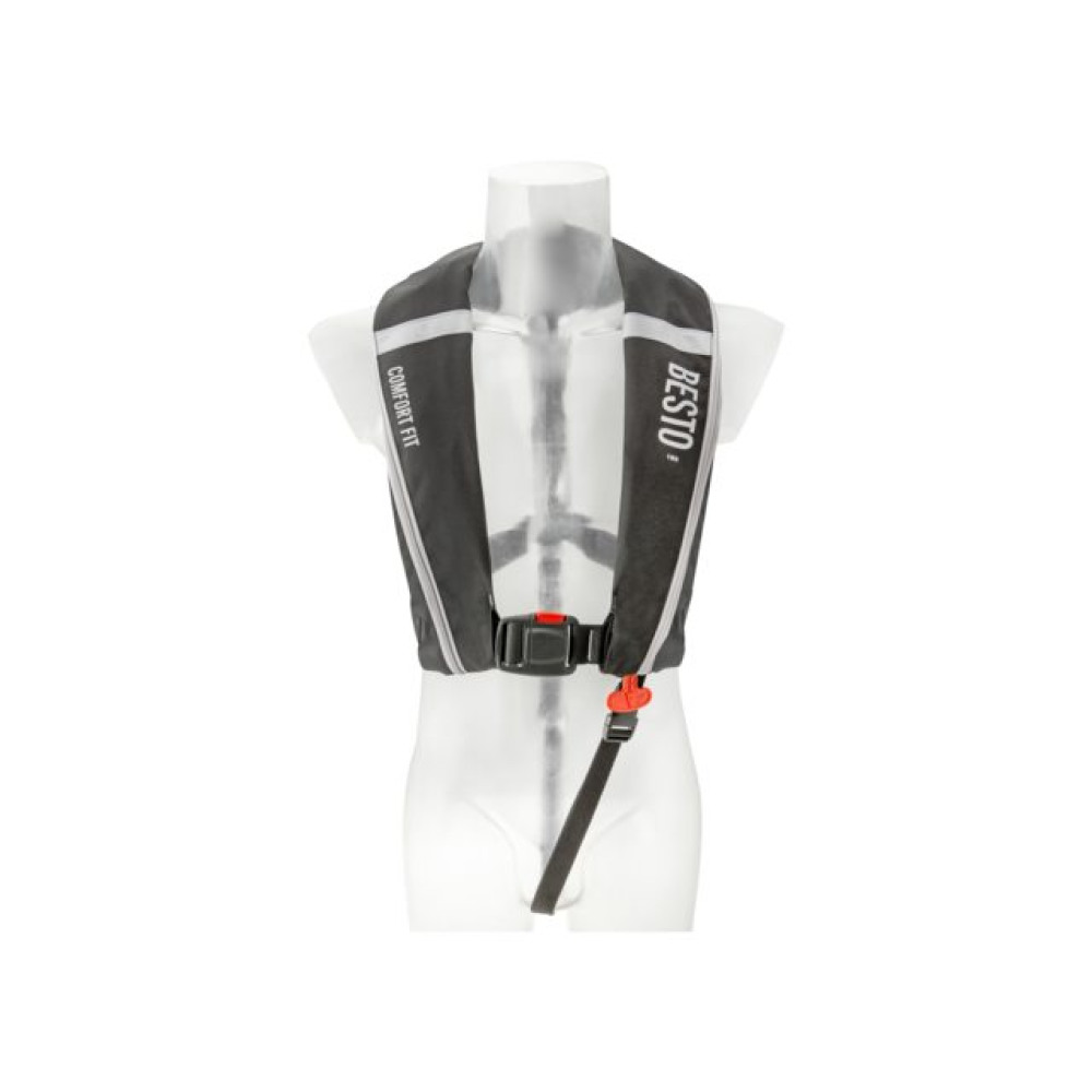 Eine neu gestaltete aufblasbare Rettungsweste, die höchsten Komfortansprüchen gerecht wird. Hervorragender Komfort durch ergonomisches Design, geringes Gewicht und einer weichen, flexiblen Schutzhülle. Eine spezielle Rückenplatte und ein verstellbarer Rückengurt sorgen dafür, dass der Kragen vom Nacken fernbleibt und bilden eine optimale Gewichts-/Druckverteilung am Körper für maximalen Komfort. Aus diesem Grund ist die Rettungsweste auch über einen längeren Zeitraum sehr angenehm zu tragen.