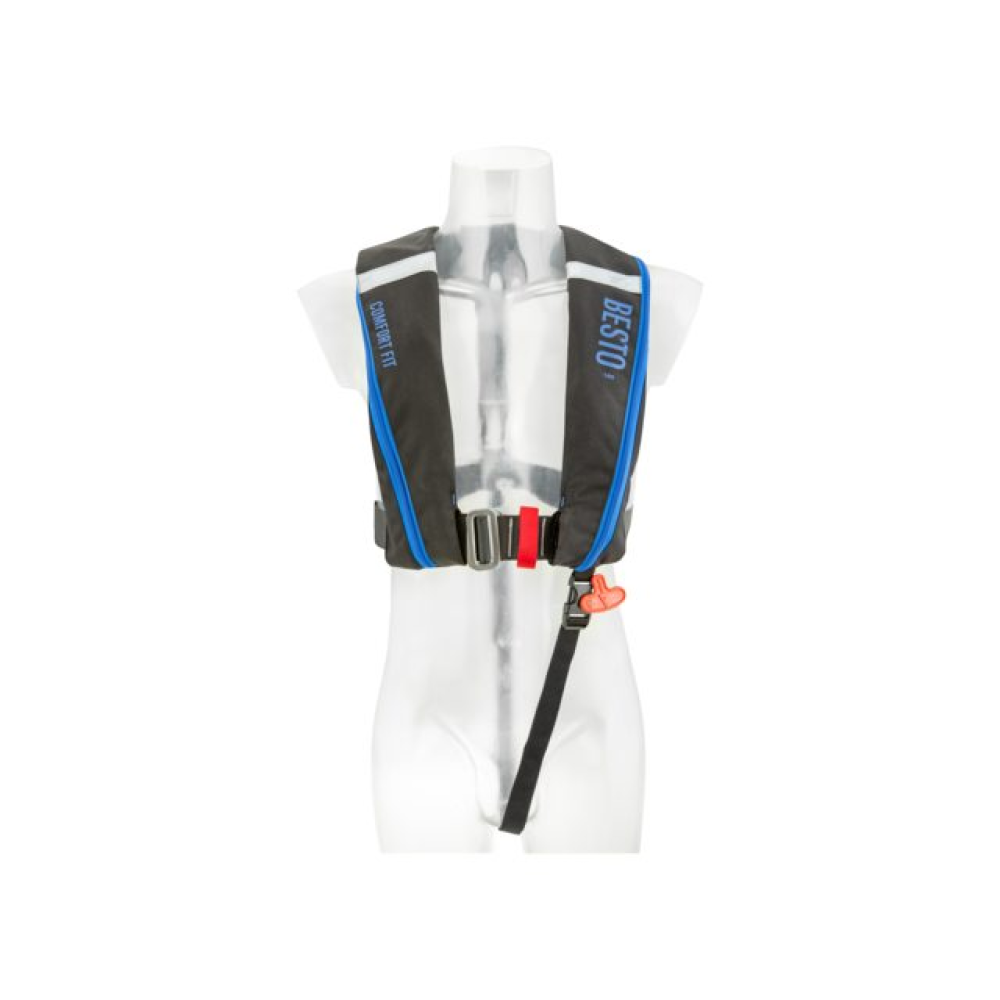 Eine neu gestaltete aufblasbare Rettungsweste, die höchsten Komfortansprüchen gerecht wird. Hervorragender Komfort durch ergonomisches Design, geringes Gewicht und einer weichen, flexiblen Schutzhülle. Eine spezielle Rückenplatte und ein verstellbarer Rückengurt sorgen dafür, dass der Kragen vom Nacken fernbleibt und bilden eine optimale Gewichts-/Druckverteilung am Körper für maximalen Komfort. Aus diesem Grund ist die Rettungsweste auch über einen längeren Zeitraum sehr angenehm zu tragen.