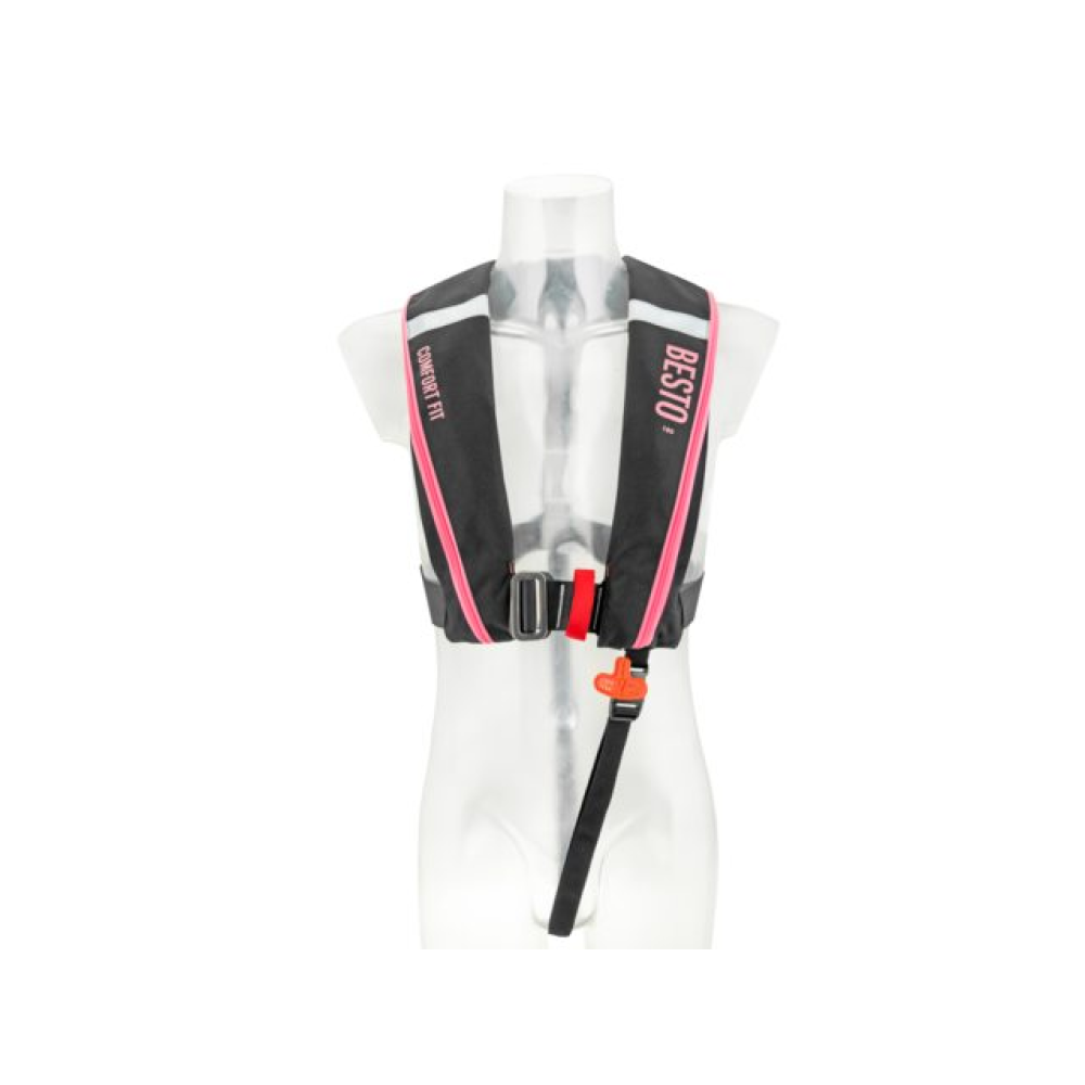 Eine neu gestaltete aufblasbare Rettungsweste, die höchsten Komfortansprüchen gerecht wird. Hervorragender Komfort durch ergonomisches Design, geringes Gewicht und einer weichen, flexiblen Schutzhülle. Eine spezielle Rückenplatte und ein verstellbarer Rückengurt sorgen dafür, dass der Kragen vom Nacken fernbleibt und bilden eine optimale Gewichts-/Druckverteilung am Körper für maximalen Komfort. Aus diesem Grund ist die Rettungsweste auch über einen längeren Zeitraum sehr angenehm zu tragen.